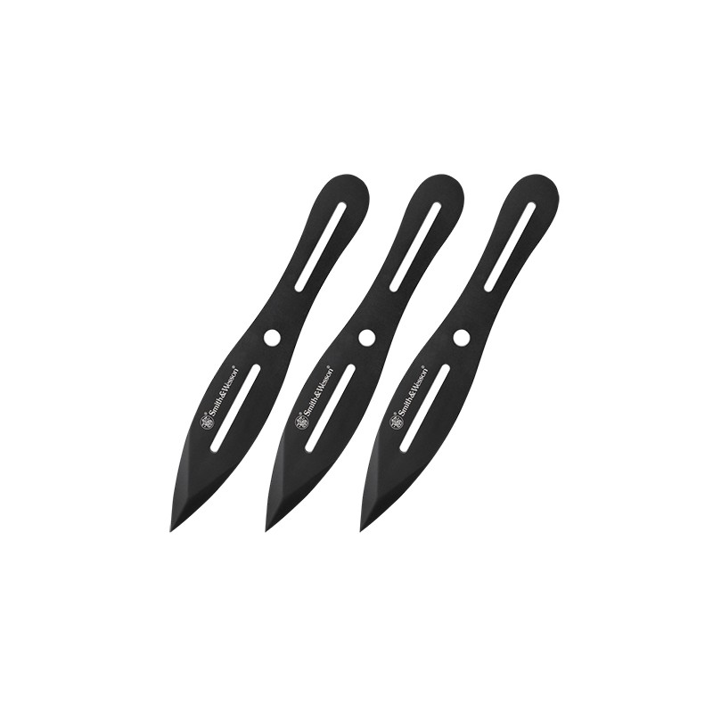 The legacy of Smith & Wesson knives and tools is built on fine craftsmanship, quality and dependability. Their expansive line consists of assisted opening, folding and fixed blade knives, as well various multi-tools and accessories in an effort to offer something for every need and every job. Whether you are an avid thrower or just starting out, this set gives you the quality you expect without breaking the bank. This model, the SWTK8B, features semi-skeletonized black stainless steel handles, dagger style blades in a black finish and a black nylon sheath that offers a belt carry option in addition to a security strap for the knives.