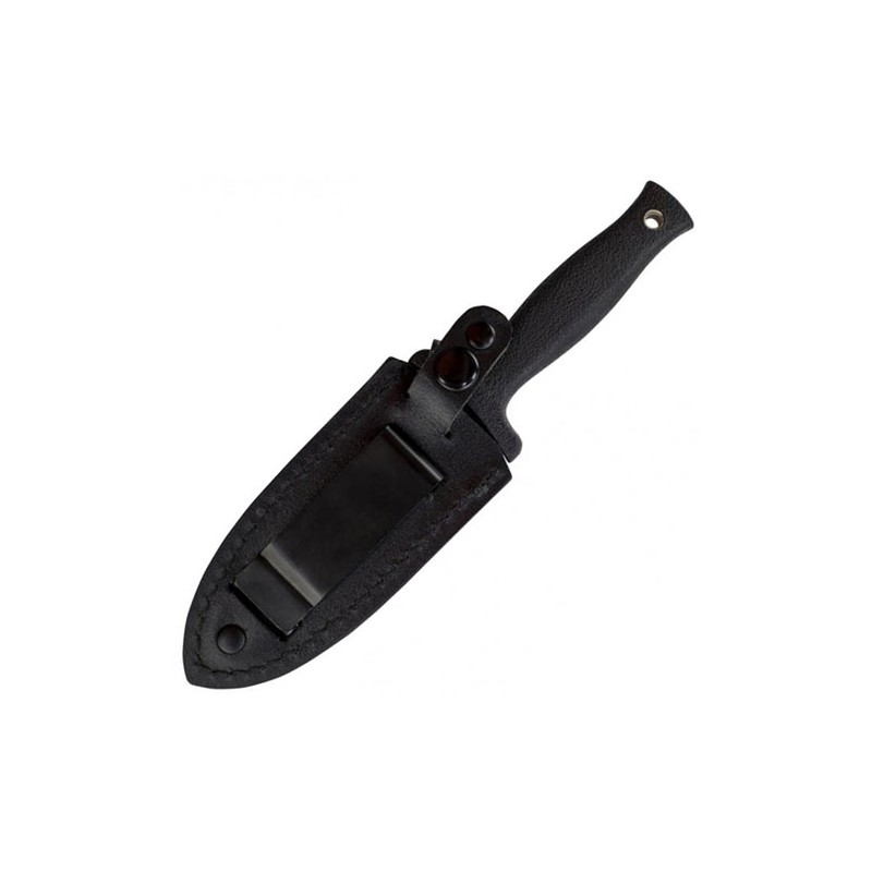 Schrade Small Boot Knife Fixed Blade, Black 7Cr17 High Carbon Stainless Steel Double Edged Spear Point Blade with Blood Groove, Black Textured TPE Wrapped Handle with Lanyard Hole, Black Leather Sheath with Boot/Belt Clip