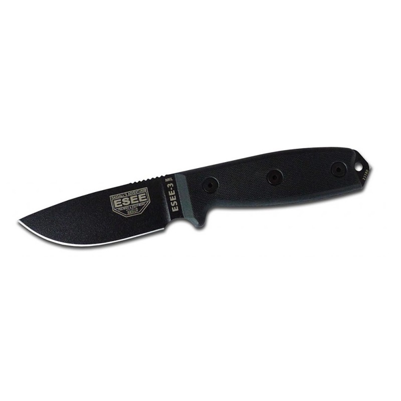 This is the model that started it all. After designing the RAT-3 for Ontario Knife Company, it was the first design they brought over when ESEE Knives (Formerly RAT Cutlery) was formed. These knives are made from high carbon 1095 steel. And while 1095 is a top choice for professional cutlery designed for hard use, it will rust and stain if not properly cared for - especially on the cutting edge and around the laser engraving. It is the user's responsibility to keep the blades properly lubricated and cleaned. The ESEE-3 is still a favorite amongst law enforcement and military teams due to its light weight, thin profile and various sheath options.