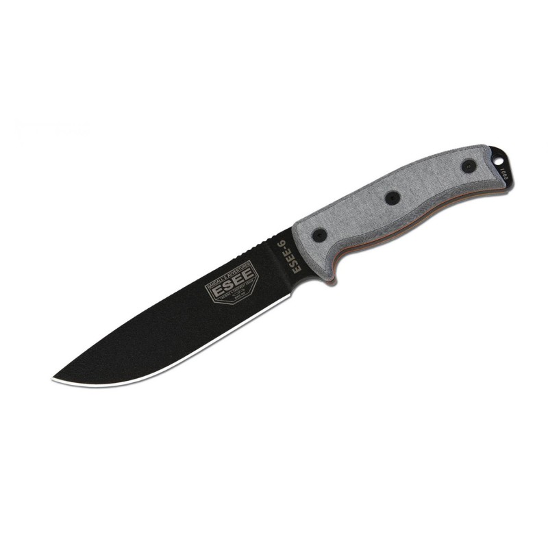The ESEE-6 is a wilderness survival and tactical knife that might just be the best all-around fixed blade on the market. With its 0.1875" blade thickness, it's the perfect blend between toughness and cutting efficiency all in a very svelte package. If you can only choose one fixed blade, then the ESEE-6 is the one for us! These knives are made from high carbon 1095 steel. And while 1095 is a top choice for professional cutlery designed for hard use, it will rust and stain if not properly cared for - especially on the cutting edge and around the laser engraving. It is the user's responsibility to keep the blades properly lubricated and cleaned. ESEE suggests using a dry film rust inhibitor such as TUF-GLIDE or TUF-CLOTH. The handles have Micarta scales that are durable and water resistant. The knife also features spine jimping, full tang construction, lanyard hole, and finger choil. The knife comes with a molded plastic sheath, clip plate, paracord lanyard, and cord lock.