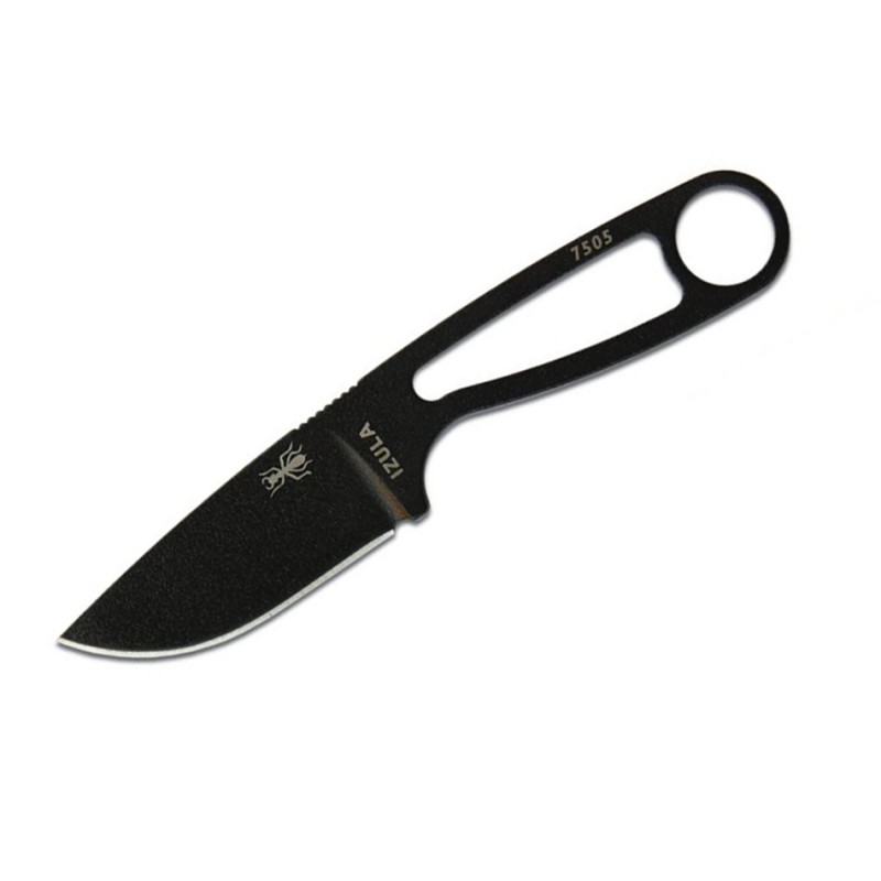 The locals in Peru call the meanest, nastiest ant of the jungle by the name "Isula" and ESEE knows it as the Bullet Ant. The Bullet Ant is known to be independent, tough, light on its feet, and a real aggressive survivor. The Izula knife is built the same way and designed to be the perfect lightweight survival tool or concealed carry knife. These knives are made from high carbon 1095 steel. And while 1095 is a top choice for professional cutlery designed for hard use, it will rust and stain if not properly cared for - especially on the cutting edge and around the laser engraving. It is the user's responsibility to keep the blades properly lubricated and cleaned. It is suggested using a dry film rust inhibitor such as TUF-GLIDE or TUF-CLOTH.
