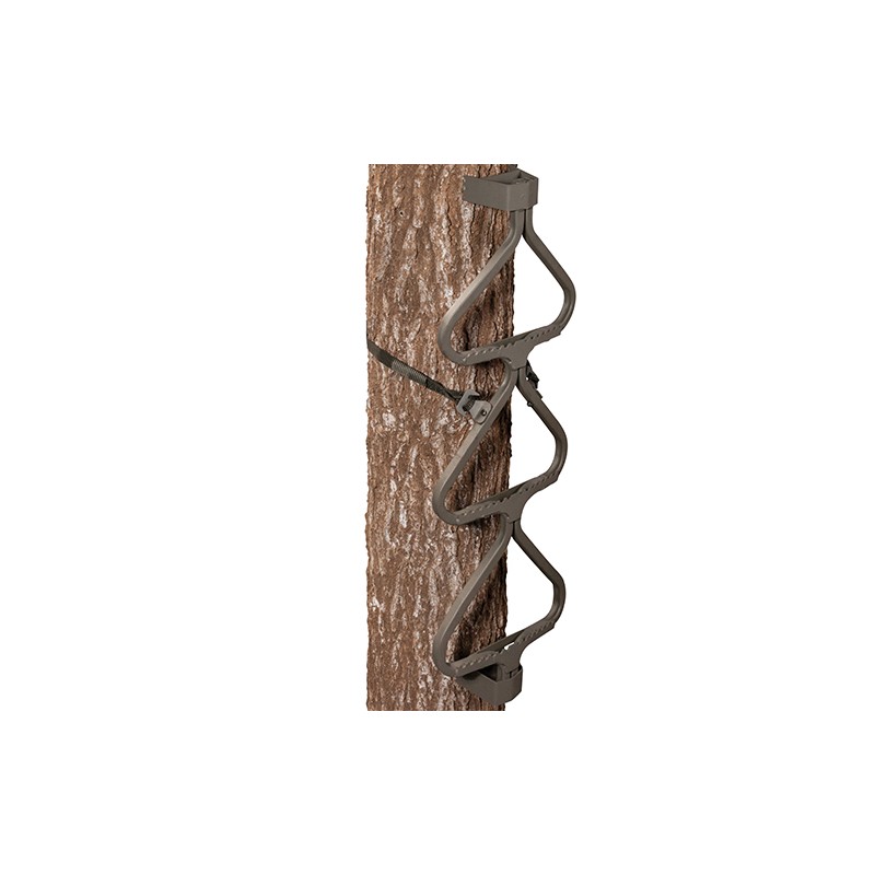 This sturdy steel hand on set features slip resistant cleated steps an four climbing sections, three double steps each for the ultimate versatility. Get around tricky tree limbs with ease.