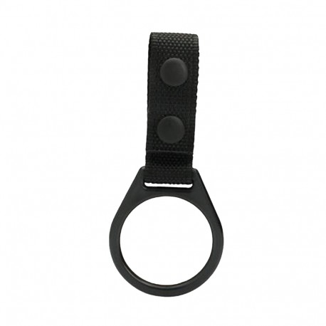 Nylon Web to wear with Cordura or Mirage nylon gear; snaps onto belt and holds ring for Mag-Lite or other D or C-cell flashlights. Double snaps attach to belts up to 2 1/4", no-glare, no-wear snaps.