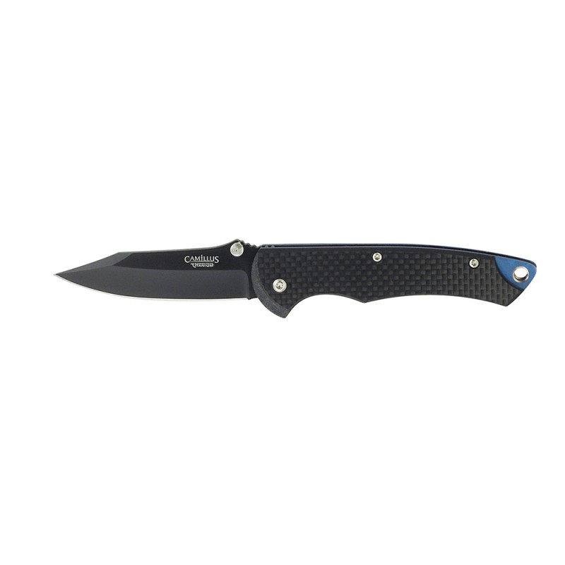 - Ergonomic Carbon Fiber body, Anodized Blue Titanium structure