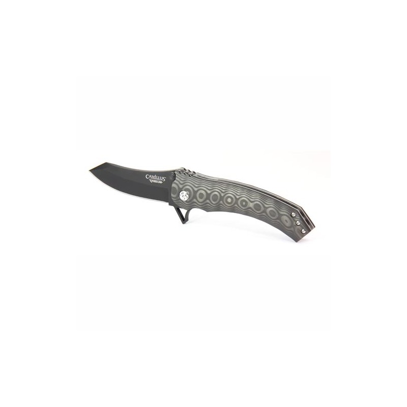 The Camillus Jolt Folding Knife is perfect for everyday carry, yet tough enough for heavy cutting tasks. Made of D2 steel with ultra-hard carbonitride titanium coating. Hollow ground with dual thumbstud for easy opening and secure liner lock. Carbon fiber handle.