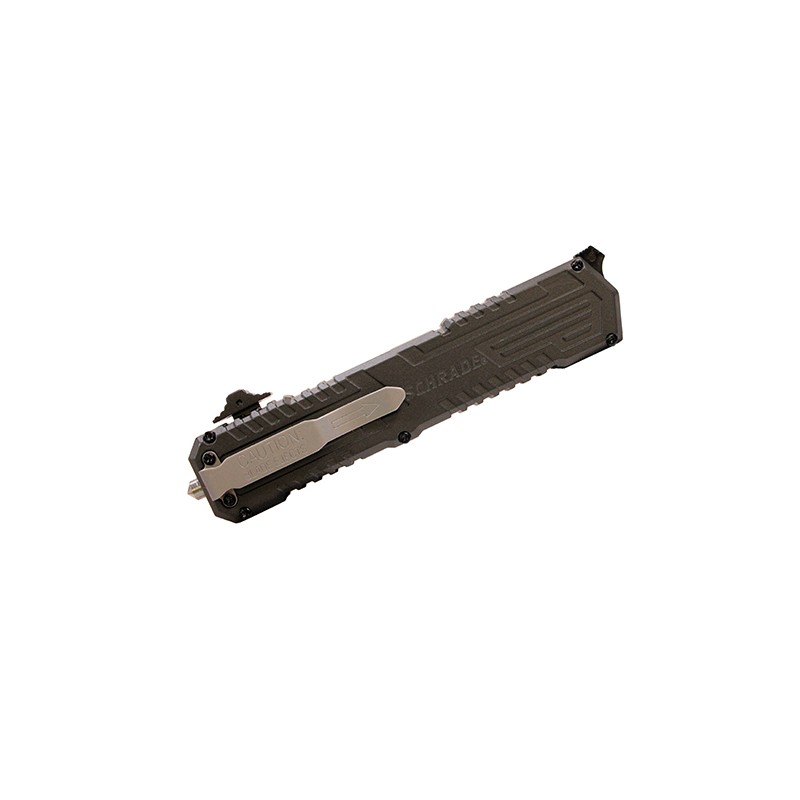 Schrade brand knives have so many models - but they are cleverly designed, well made and really economical. These Out-the-Front openers are super fast and well made. They have a safety on the side and the mechanism takes a little getting used to, but they are truly awesome and impressive. The 3rd Generation Out the Front Assist model is no exception. It's got a 3.5" double edge spear point blade, tough aluminum handles, and a locking safety mechanism.