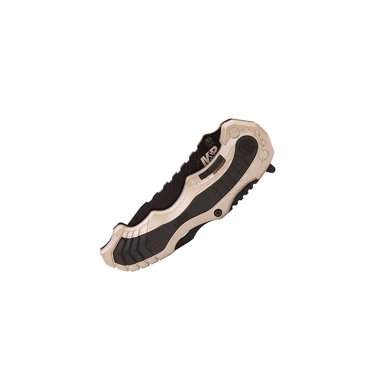 Maintaining the intimidating firearm styling and solid feel of the M&P (Military & Police) Series, this tactical combat folder features a modified tanto blade and a tip-up pocketclip. The powerful and super fast M.A.G.I.C. assisted opening mechanism is activated by a pulling the lever (resembling a gunsight) or pushing up on the thumb stud, springing the blade open.