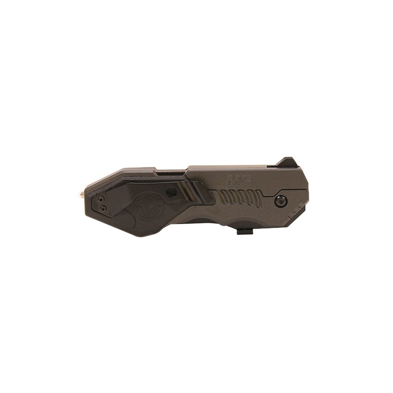 Maintaining the intimidating firearm styling and solid feel of the M&P (Military & Police) Series, this combat folder features a glass breaker tip and a tip-up pocket clip. The powerful and super fast M.A.G.I.C. assisted opening mechanism is activated by a pulling the lever (resembling a gunsight) or pushing up on the thumb stud, springing the blade open.