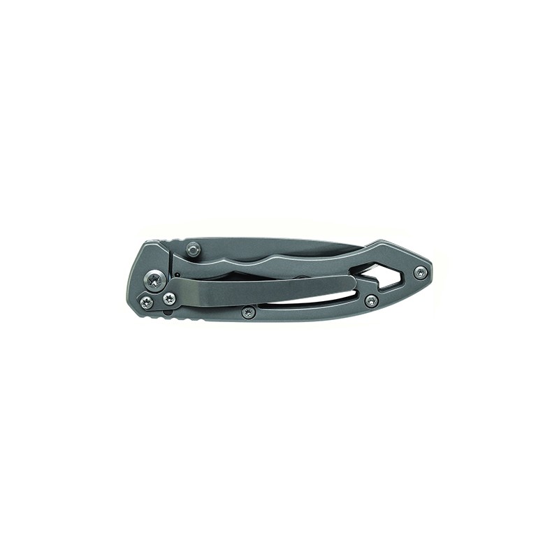 The Smith & Wesson CK400L Large Drop Point Frame Lock is just that, with a skeletonized stainless steel handle. The design has jimping on the spine of the blade, though it's not very aggressive. This is a great secondary knife to carry to use and abuse.