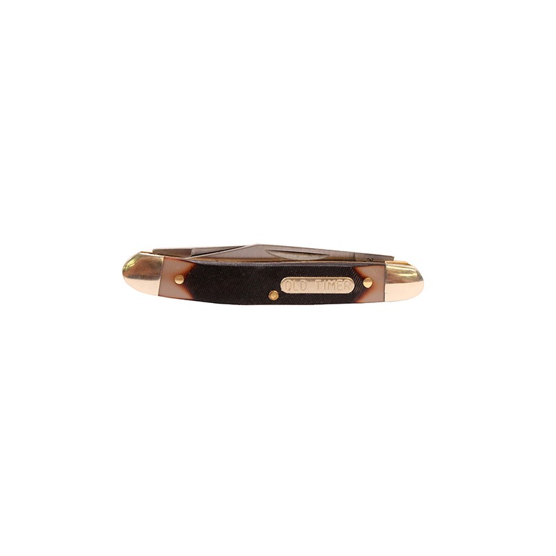 This Old Timer classic Minuteman pocket knife is an American tradition. Often found in many of our grandfather pockets, the Minuteman features a satin finished stainless steel clip point and pen blades with slip joint construction. The stockman-shaped handle features polymer composite scales, brass liners, polished nickel silver bolsters, and brass rivet construction.