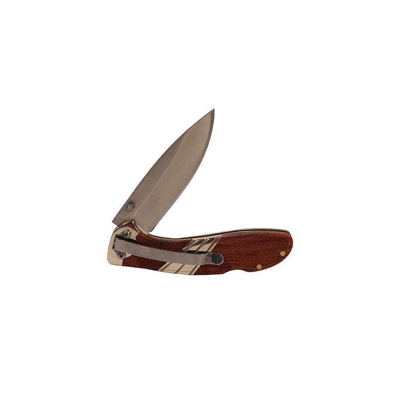 This Old Timer Medium Lockback knife features textured wood handle scales and a 2.89" blade with a satin finish. The Medium Lockback offers a solid EDC design built to tackle any daily cutting chore. It has a textured wood handle with brass pins and liners, and nickle silver bolsters. The blade opens with dual thumb studs and locks up solid with a lockback mechanism. Item includes a stainless steel pocket clip for comfortable everyday carry.