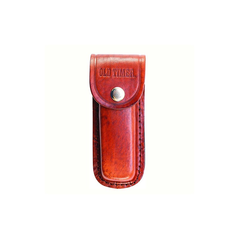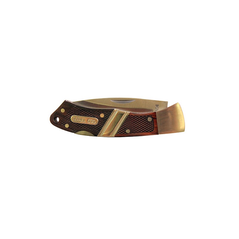 The Schrade Old Timer Mountain Beaver Jr. Lockback folder is mouthful, we know, but a nice traditional hunting knife with very clean lines. The drop point 9Cr18MoV high carbon stainless steel blade features a nail nick opening method and it mirror polished for better slicing capability. The handle is made from wood with Nickel Silver bolsters with brass pins and it comes with a beautiful leather belt sheath.