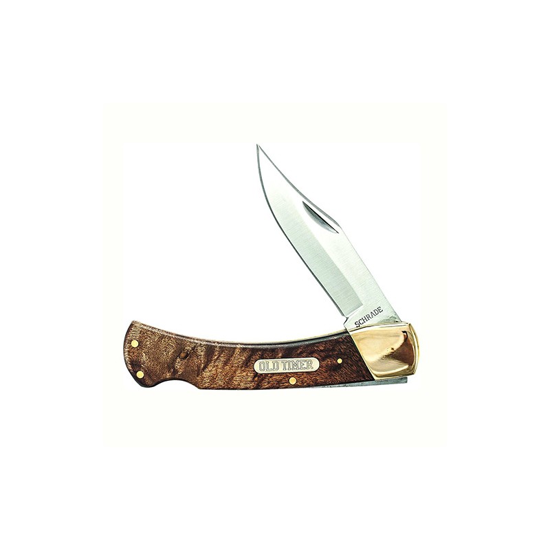 Classy. That's the best way to describe this sleek-looking lock-back from Schrade. The Golden Bear design comes with a 3.9-inch stainless-steel blade affixed to a handsome genuine desert ironwood handle. It's adorned with silver pins and bolsters and an Old Time shield, giving it a classic, rustic look. In addition, it includes a leather sheath, making every day carry as convenient as possible.