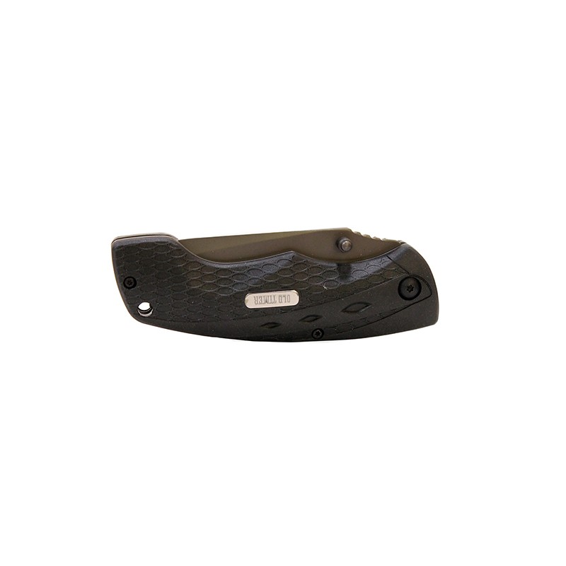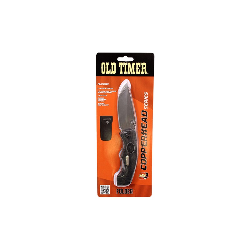 The Schrade Old Timer Copperhead Drop Point Liner Lock Folder features a 3.44" blade made from 7Cr17MoV high carbon stainless steel. The handles are snake skin textured rubber with jimped thumb ramp and lanyard hole. Comes with a molded nylon belt sheath.