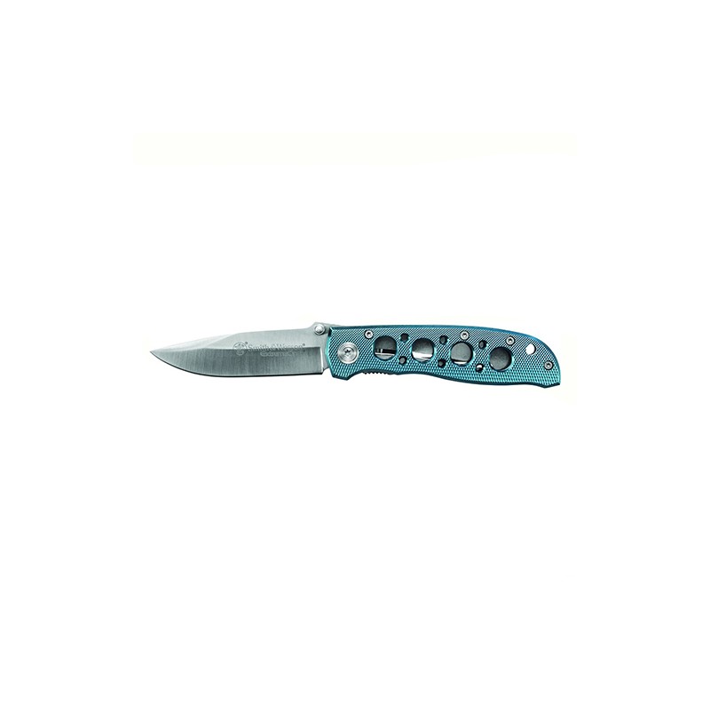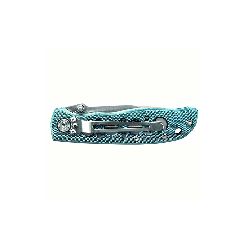 The Extreme Ops CK105BL knife handles your daily cutting chores with ease, while making you look good. A blue aluminum handle with drilled holes keeps the overall weight down and a turned diamond texture provides grip. Its satin finished modified drop point blade is quick to attention with the thumb stud opener, and a steel liner lock tab ensures solid lockup. The stainless steel pocket clip is mounted for tip-down carry.