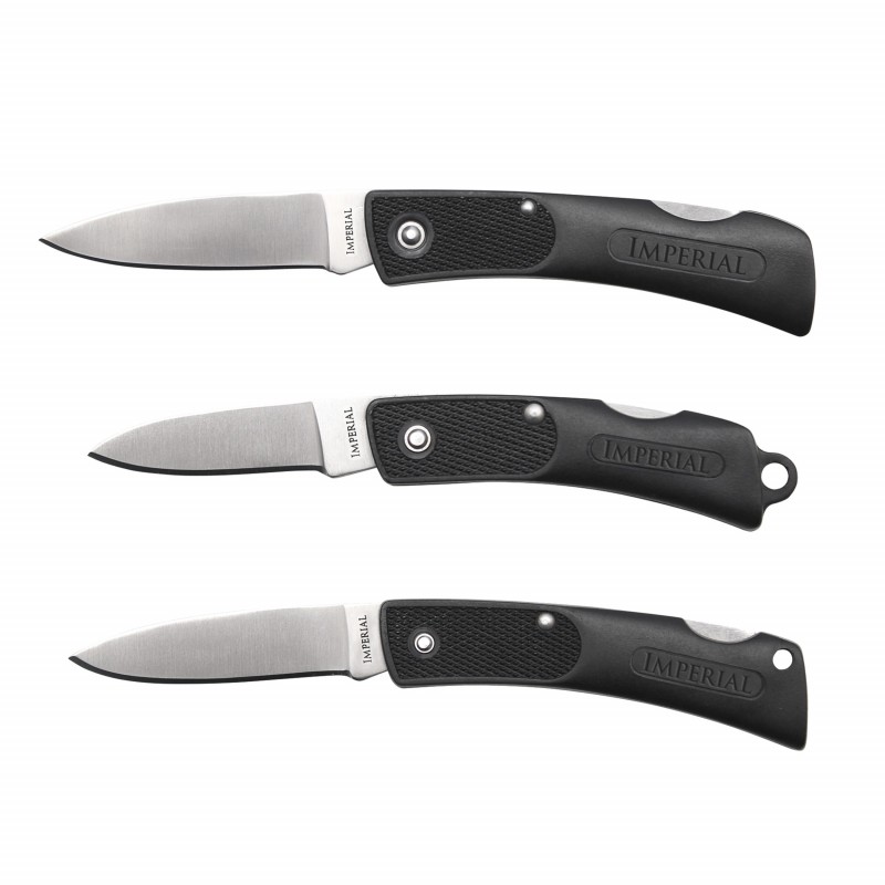 Imperial 3 pc. Combo pack with SP1, SP2, and SP3 lock back folding knives. Manufacturing, designing, and distributing high-quality stainless steel cutting tools and accessories since our inception. Bti tools owns and produces Schrade, old timer, Uncle Henry, and imperial branded products, and are also licensed to produce multiple product lines under the world famous Smith & Wesson brand. In total bti tools manufactures several hundred different products including fixed and folding knives, collapsible batons, tactical pens, handcuffs, tactical and survival accessories, and flashlights.