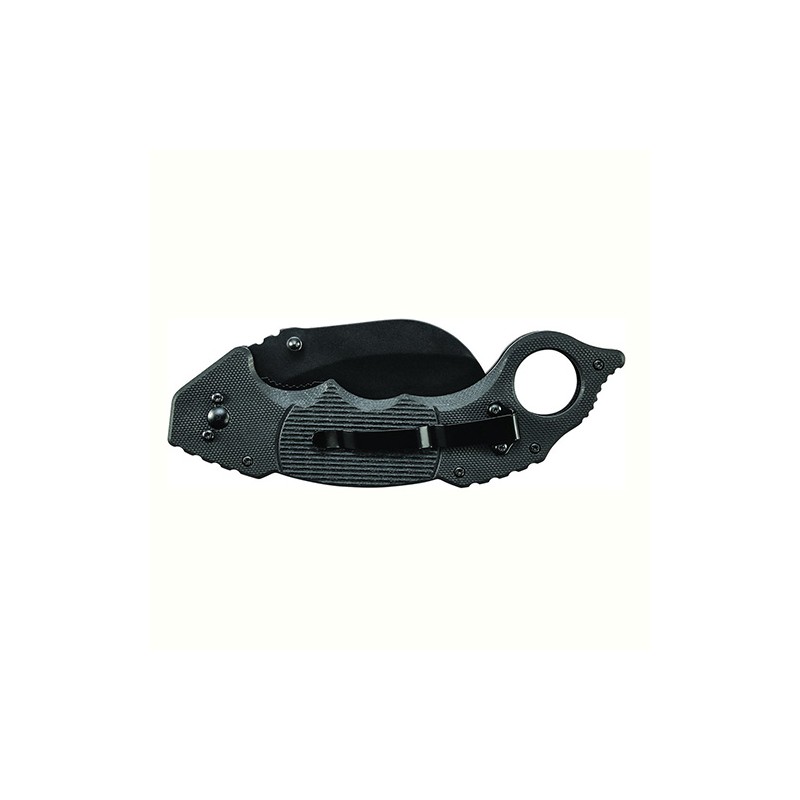 Schrade Liner Lock Folding Knife, 9Cr18MoV High Carbon Stainless Steel Karambit Blade with Ambidextrous Thumb Knobs and Spine Jimping, Black G-10 Handle with Jimping, Finger Hole, and Ambidextrous Reversible Pocket Clip
