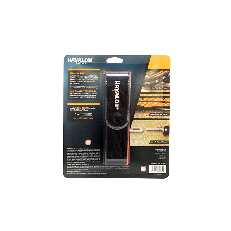 The Havalon Baracuta-Z Pro Fillet Knife has the same great concept as the Havalon Piranta Series razor-sharp disposable blades on a ultra-lightweight knife, but with a larger and longer profile. The Baracuta-Z features a razor-sharp stainless steel fillet blade, rugged zytel handle with orange rubber grip inlays, ambidextrous thumb studs, an open back for easy cleaning, and liner lock construction. Comes with a removable tip-down pocket clip and nylon holster. Includes 5 additional #127XT stainless steel 5" blades. Fits #115XT blades as well.