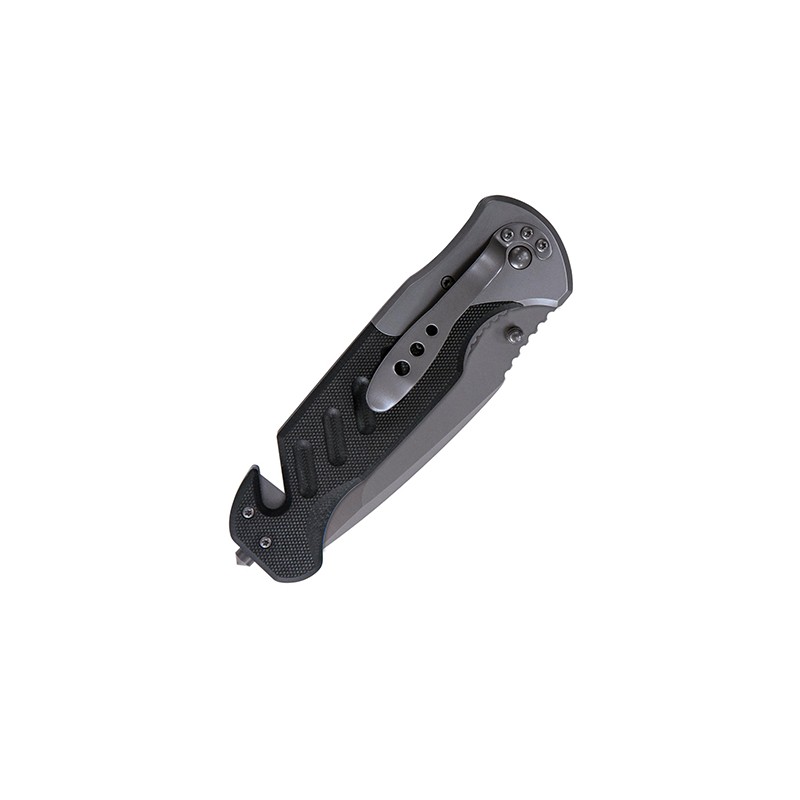 The Coypu Folder has a 3.75" blade and is 8.75" overall when open. The handle is Black G10 and the steel is 5Cr15 stainless. The Coypu features a seat belt cutter and glass breaker tip.