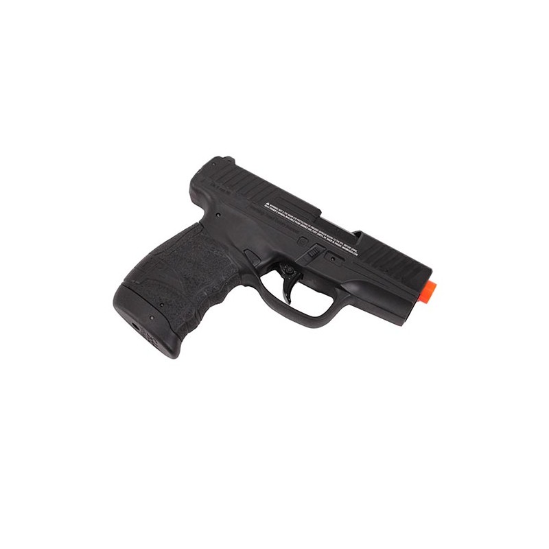 The Walther PPS is a compact pistol with a polymer frame and metal slide. The real counterpart is designed to be a concealable pistol and the replica is no different. Featuring a slim grip, a very flat profile, and overall compact size, this pistol still feels really good in the hand and is easy to control even though it is has a skinny grip. This is a partial-blowback pistol powered by CO2, so it will have recoil and the slide will move when fired and lock back when empty. The partial blowback means the recoil system is short stroked making the gun's cycling short and quick yet strong. The CO2 will last you quite a bit compared to a full blowback pistol since it does not use as much gas for its operation. The safety is a crossbolt style and is directly on the trigger itself.