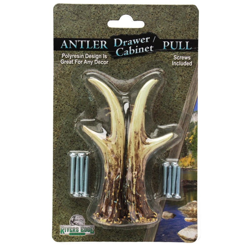 Stunning detail and realism in this hand painted poly resin Antler Cabinet Hardware. Mounting screws are included. In color display hang card.