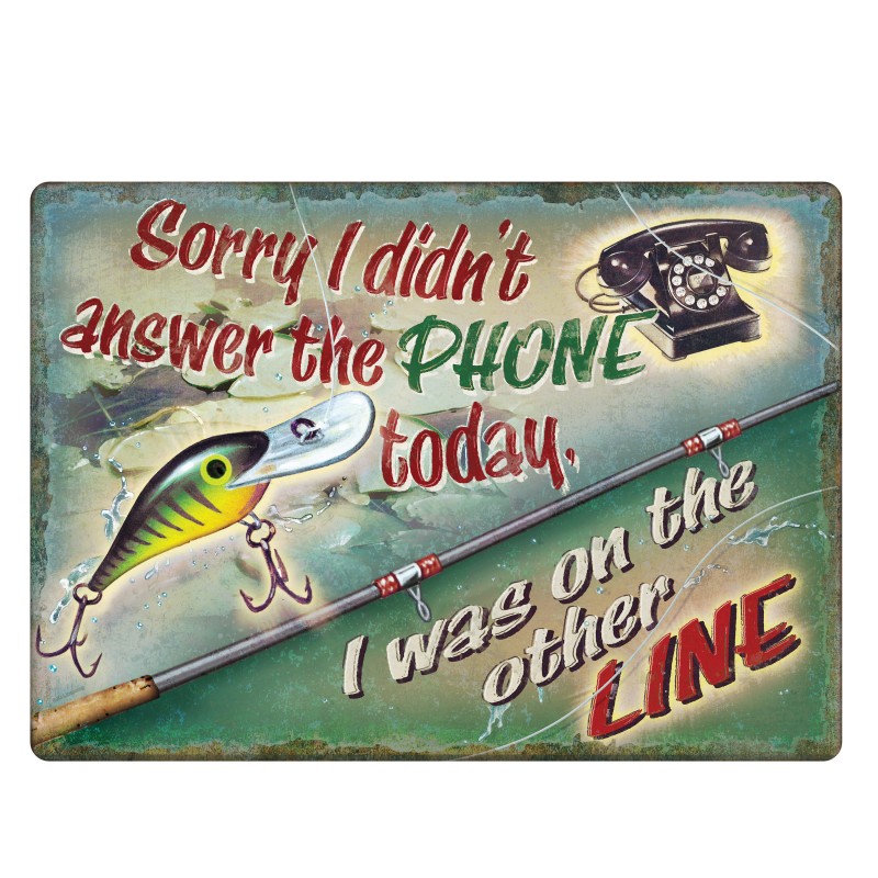 Rivers Edge tin sign features rolled edges, embossed features and durable weatherproof finish. Includes pre-punched corner holes for mounting and clear removable hang tab for peg board display.