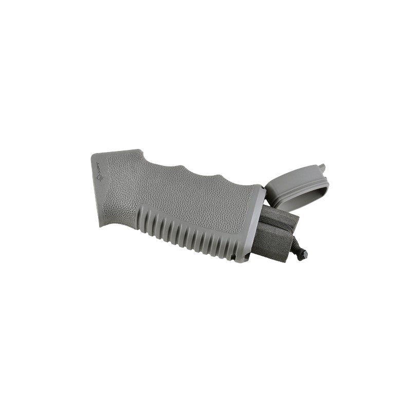 The Engage tactical pistol grip (EPG47) provides a combination of fit and function unequalled by the originally supplied AK47 pistol grip. Textured finger swells and a grooved backstrap provide a positive grip surface with wet or gloved hands. There is a secure watertight storage compartment with plug retention for one handed storage access. A customizable storage sled with quick access tab diminishes all rattle.