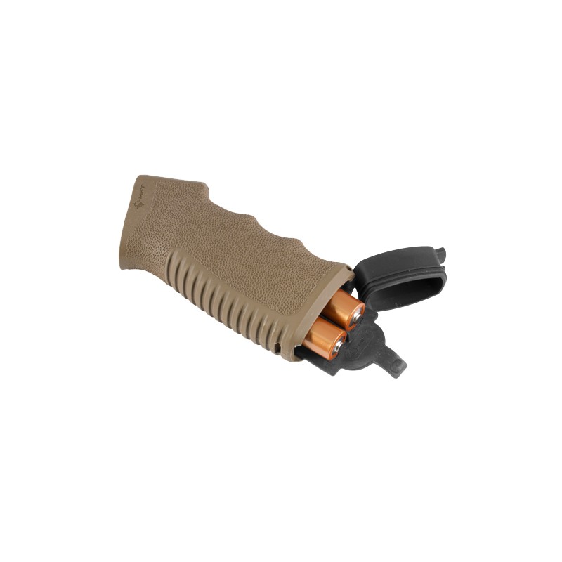 The Engage tactical pistol grip (EPG47) provides a combination of fit and function unequalled by the originally supplied AK47 pistol grip. Textured finger swells and a grooved backstrap provide a positive grip surface with wet or gloved hands. There is a secure watertight storage compartment with plug retention for one handed storage access. A customizable storage sled with quick access tab diminishes all rattle.