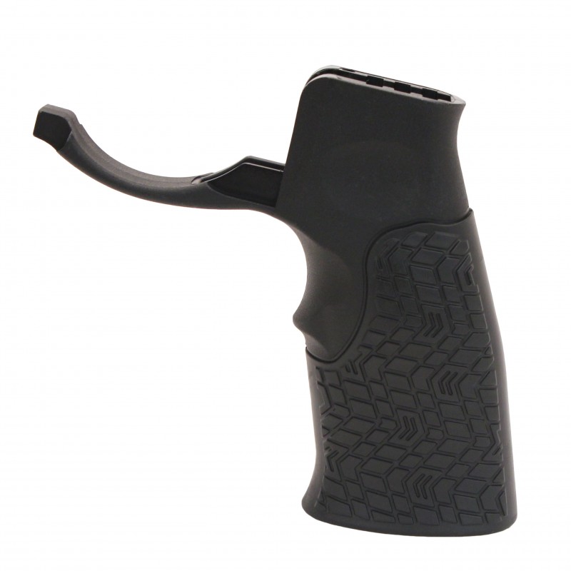 The Daniel Defense pistol grip is an improvement to the old standby A2. The grip was designed with ergonomics and controllability in mind. The grip shares the angle of the classic 1911 pistol for the most natural hand position and comfortable feel. This pistol grip incorporates an oversized trigger guard covering the gap between grip and lower receiver which can wear on the shooters hand and easily accommodates for gloves. Installation is simplified by the fact the integral trigger guard doesn't require a roll pin so there is a reduced chance of damaging the lower receiver. A soft touch overmolding section enhances grip, wet or dry.