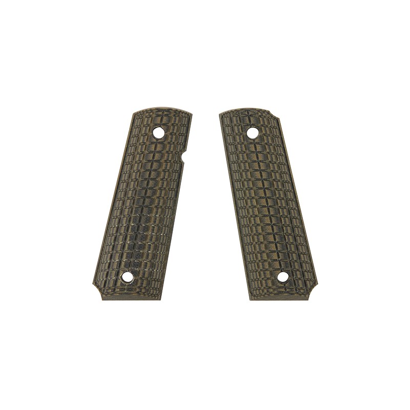 G-10 material is a fiberglass based epoxy resin laminate. It is an extremely tough and durable material that is impervious to moisture, weather or chemicals, making it a perfect material for handgun grips. The multiple layered construction allows the use of different colors to be added to the grips, creating attractive patterns as it is machined. The Pachmayr G-10 Tactical pistol grips are available in two textures, our coarse Grappler pattern or fine checkered, and two color patterns, green/black and grey/black. Pachmayr G-10 Tactical grips are the toughest, most durable, and best looking grips on the market. Available to fit 1911's, Sig 238's and 938's, Ruger Mk III and 22/45's, Beretta 92's, and CZ 75's.