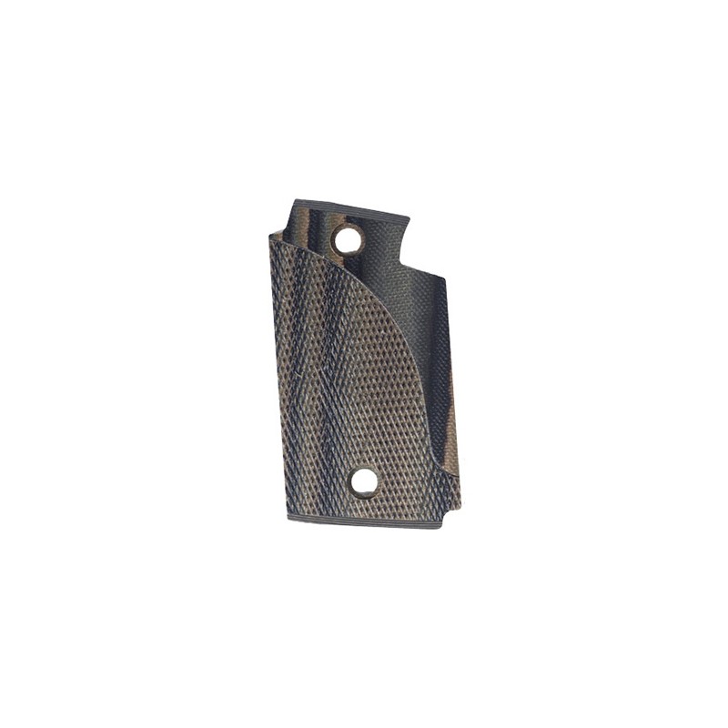 G-10 material is a fiberglass based epoxy resin laminate. It is an extremely tough and durable material that is impervious to moisture, weather or chemicals, making it a perfect material for handgun grips. The multiple layered construction allows the use of different colors to be added to the grips, creating attractive patterns as it is machined. The Pachmayr G-10 Tactical pistol grips are available in two textures, our coarse Grappler pattern or fine checkered, and two color patterns, green/black and grey/black. Pachmayr G-10 Tactical grips are the toughest, most durable, and best looking grips on the market. Available to fit 1911's, Sig 238's and 938's, Ruger Mk III and 22/45's, Beretta 92's, and CZ 75's.