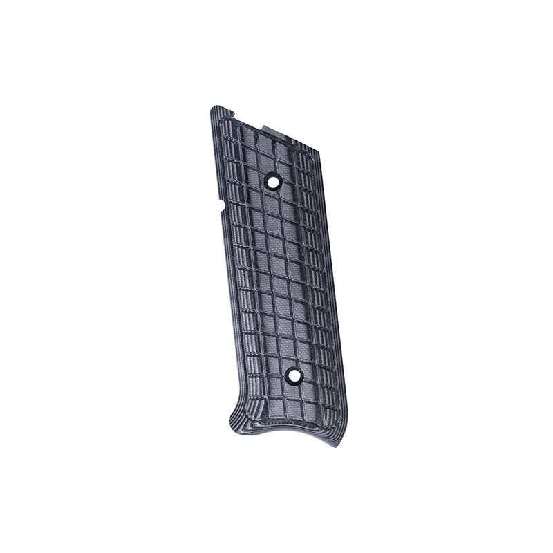 G-10 material is a fiberglass based epoxy resin laminate. It is an extremely tough and durable material that is impervious to moisture, weather or chemicals, making it a perfect material for handgun grips. The multiple layered construction allows the use of different colors to be added to the grips, creating attractive patterns as it is machined. Our Pachmayr G-10 Tactical pistol grips are available in two textures, the coarse Grappler pattern or fine checkered, and two color patterns, green/black and grey/black. Pachmayr G-10 Tactical grips are the toughest, most durable, and best looking grips on the market. Available to fit 1911's, Sig 238's and 938's, Ruger Mk III and 22/45's, Beretta 92's, and CZ 75's.