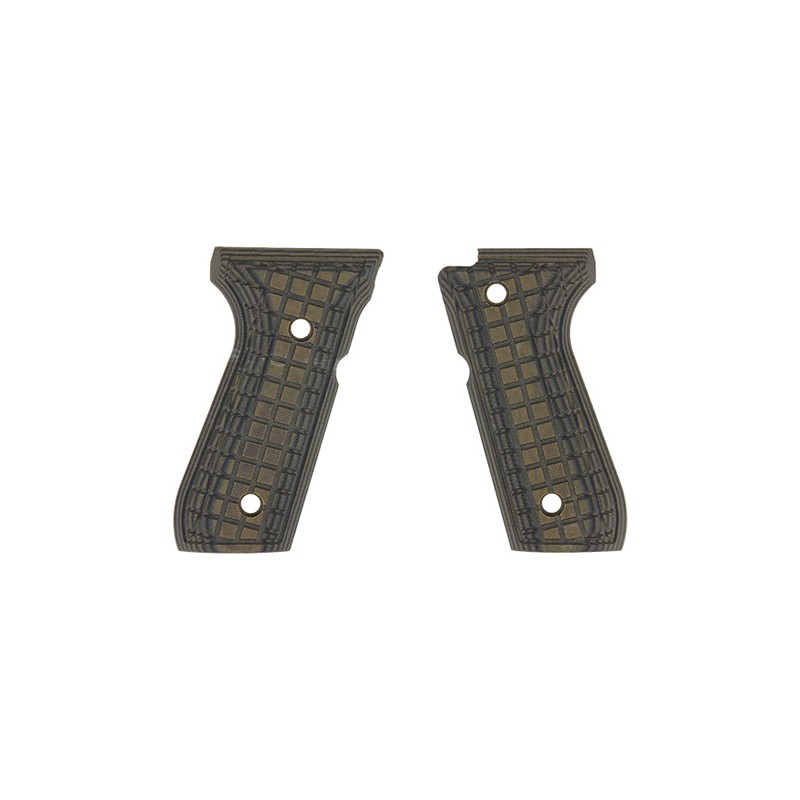 G-10 material is a fiberglass based epoxy resin laminate. It is an extremely tough and durable material that is impervious to moisture, weather or chemicals, making it a perfect material for handgun grips. The multiple layered construction allows the use of different colors to be added to the grips, creating attractive patterns as it is machined. Our Pachmayr G-10 Tactical pistol grips are available in two textures, the coarse Grappler pattern or fine checkered, and two color patterns, green/black and grey/black. Pachmayr G-10 Tactical grips are the toughest, most durable, and best looking grips on the market. Available to fit 1911's, Sig 238's and 938's, Ruger Mk III and 22/45's, Beretta 92's, and CZ 75's.