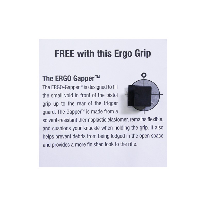 The original Ergo Grip, developed by Steve Hines, was the first truly ergonomic, shooter focused grip for AR platform rifles. Designed for performance by creating a better interface between the shooter and firearm, the Ergo Grip is still the standard by which positive grip and shooter comfort are measured. The Ergo Grip comes with the patented Gapper for increased comfort.