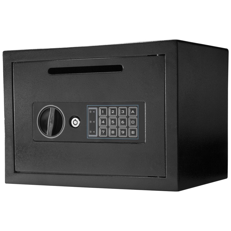 Compact Keypad Depository Safe by Barska Depository safes or drop safes are an important tool in safe guarding cash from thieves and/ or employees. Instead of leaving large bills and extra cash inside the register, simply drop envelopes, receipts or files into the access slot in the safe where it stays safely out of reach.