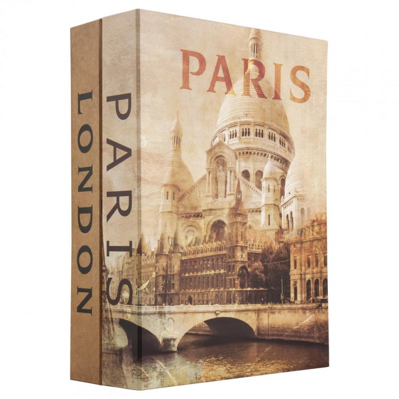The Paris and London Dual Book Lock Box with Key Lock by Barska features a solid steel construction. The exterior is disguised to appear as two books stacked together but open the cover to reveal a strong compact steel safe. Blends seamlessly in plain sight on a book shelf. Includes set of keys. Discretely store cash, passports, jewelry and valuables.