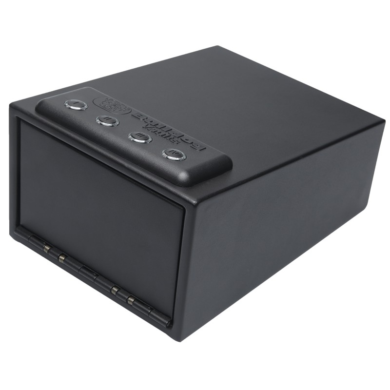- Quick Opening spring loaded door with quiet, "Soft Stop" technology allows retrieval of firearm without revealing location.