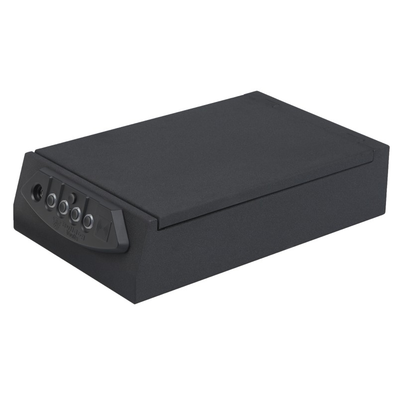 - Quick Opening spring loaded door with quiet, "Soft Stop" technology allows retrieval of firearm without revealing location.