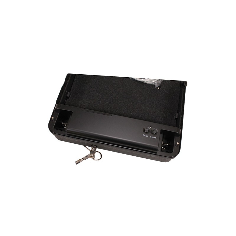- Mounts discreetly in most closets for quick access