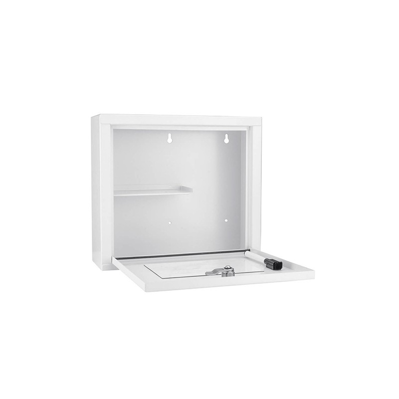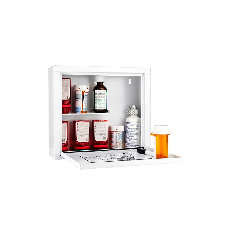 The Small Medical Cabinet by Barska keeps prescription medication and other medical supplies safely stored and secured. The front opening door doubles as a convenient tray for temporarily holding medication, and an internal shelf helps maximize storage space. Notes about prescriptions or patient information can be left on the included magnetic dry erase pad, and a magnetized dry erase marker can be placed anywhere on the Small Medical Cabinet to ensure that it is always within reach. The Barska Small Medical Cabinet comes will pre-drilled mounting holes and mounting hardware for easy installation.
