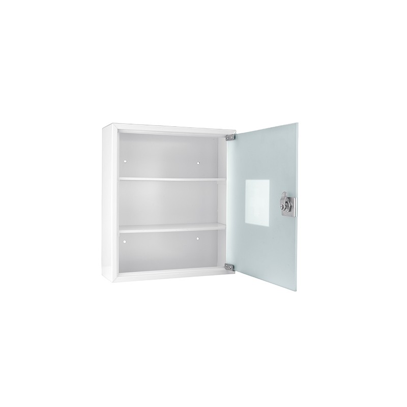 he Standard Medical Cabinet by Barska keeps prescription medication and other medical supplies safely stored and secured. Three internal shelves provide storage space for multiple medical supplies and prescription drug bottles. Notes about prescriptions or patient information can be left on the included magnetic dry erase pad, and a magnetized dry erase marker can be placed anywhere on the Standard Medical Cabinet to ensure that it is always within reach. The Barska Standard Medical Cabinet comes will pre-drilled mounting holes and mounting hardware for easy installation.