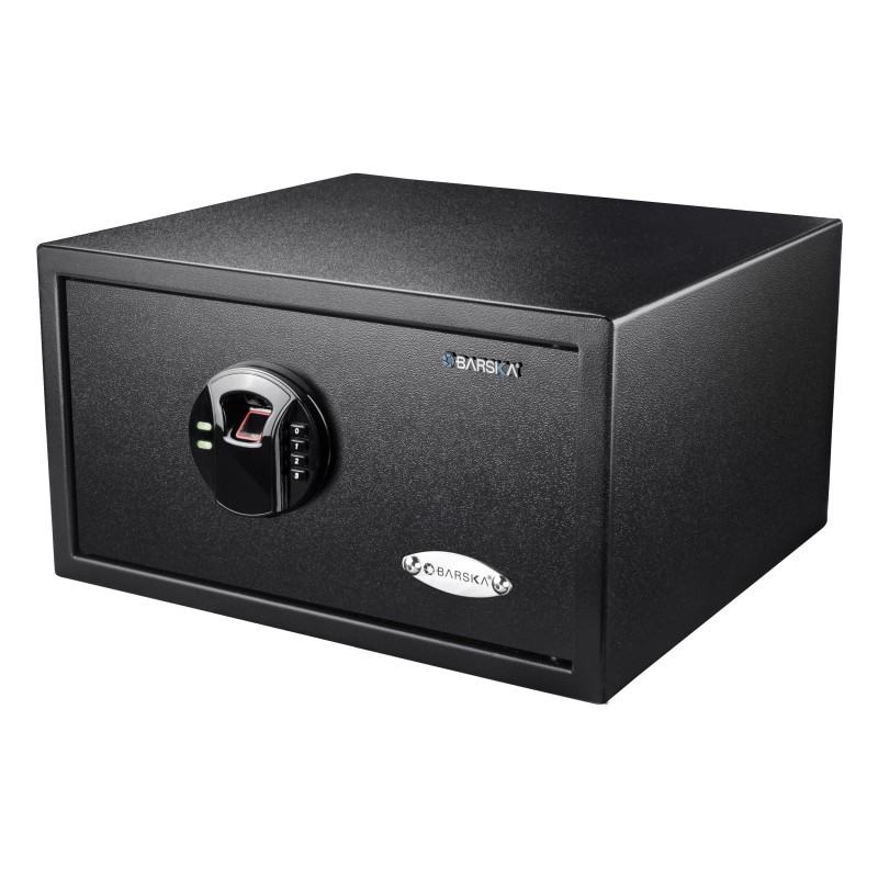 Protect valuables and belongings with the HQ200 Biometric Keypad Safe by Barska. The HQ200 Safe features an all-new module that provides both a Biometric Fingerprint Scanner and a Numeric Digital Keypad. The HQ200's advanced BioSecure Technology will only recognize the fingerprints that have been programmed into the safe, and the user-created PIN Code acts as a backup incase the safe needs to be accessed by someone whose fingerprint has not been registered.