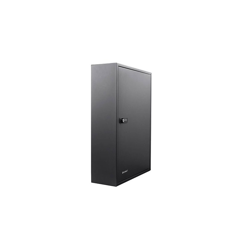 The 200 Position Key Lock Box from Barska (Black) features a hook-style cabinet that makes key organization easy and convenient. Inside the cabinet are a total of 20 rows of color-coded and numbered hooks, each of which is easy to access and keep track of thanks to the included key index. The two-sided indexing chart has ample room to document the keys hook position corresponding lock, and a drop-in plastic sleeve tethered to the hinge inside the safe provides a hands-free reference.The safe has four pre-drilled mounting holes and included hardware for installation.