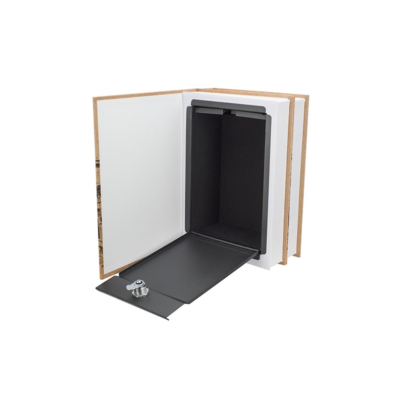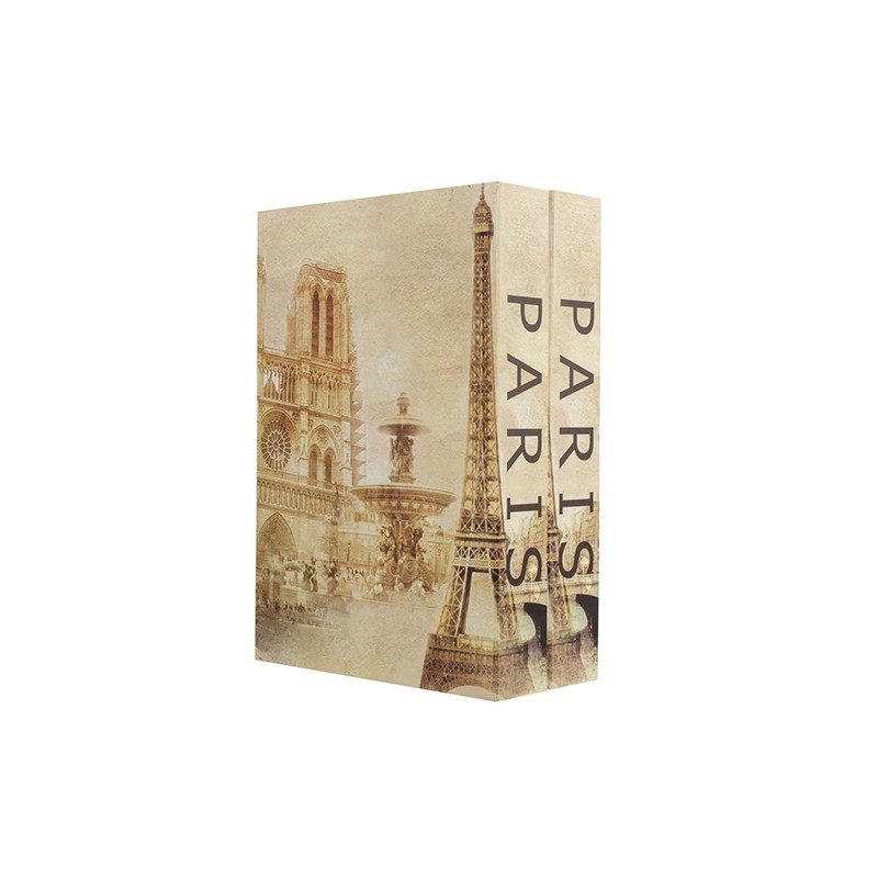 The Paris and Paris Dual Book Lock Box with Key Lock by Barska features a solid steel construction. The exterior is disguised to appear as two books stacked together but open the cover to reveal a strong compact steel safe. Blends seamlessly in plain sight on a book shelf. Includes set of keys. Discretely store cash, passports, jewelry and valuables.