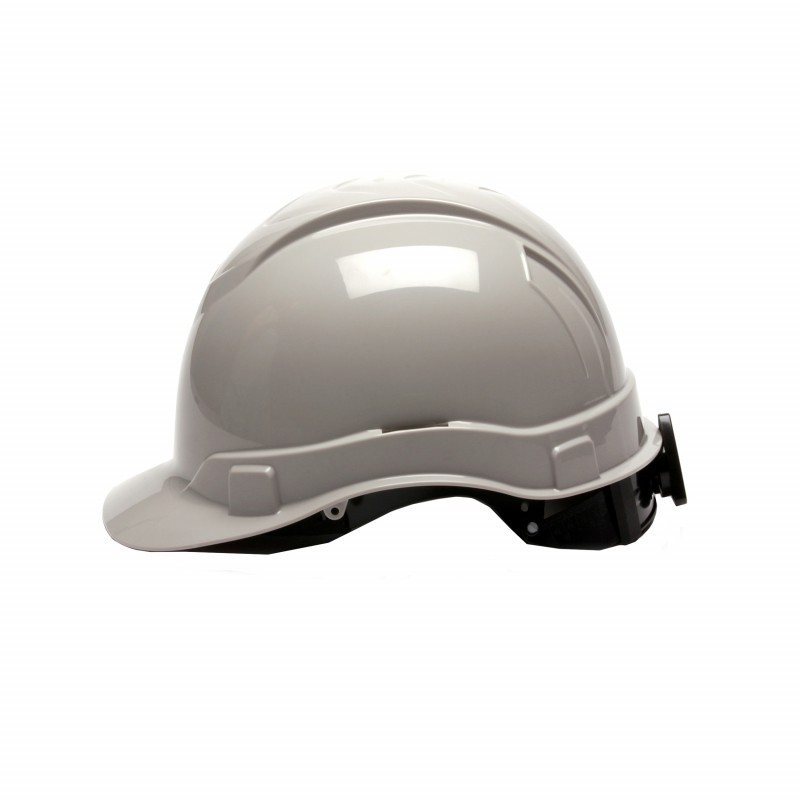 Shell constructed from High Density Polyethylene. Rain trough on sides and back of helmet channel moisture away. Soft brow pad is replaceable and washable. Low profile design. Universal accessory slots fit cap mounted ear muffs and chin straps. Snap Lock suspension features tuck away adjustments for all day, hassle free wear. This version is the Cap style with 4 point ratchet Suspensions. Available in 6 colors. Meets ANSI Z89.1 standards, Type 1 - Class C, G, and E.