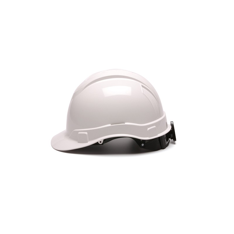 Shell constructed from High Density Polyethylene. Rain trough on sides and back of helmet channel moisture away. Soft brow pad is replaceable and washable. Low profile design. Universal accessory slots fit cap mounted ear muffs and chin straps. Snap Lock suspension features tuck away adjustments for all day, hassle free wear. Cap style is available with 4 and 6 point nylon suspensions - Snap Lock and Ratchet styles. Available in 6 colors. Meets ANSI Z89.1 standards, Type 1 - Class C, G, and E.