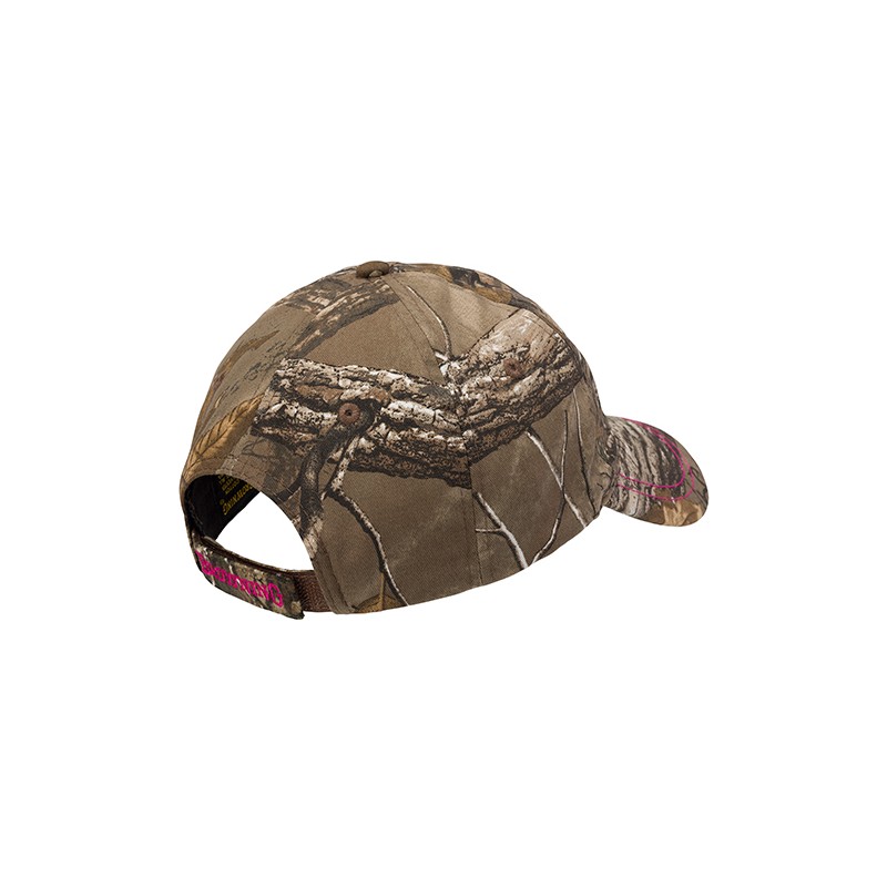 Pursuit Cap - Realtree Xtra, With Hook and loop closure, six-panel women's cap with raised white and pink Buckmark, contrasting magenta thread, and Realtree Xtra camo