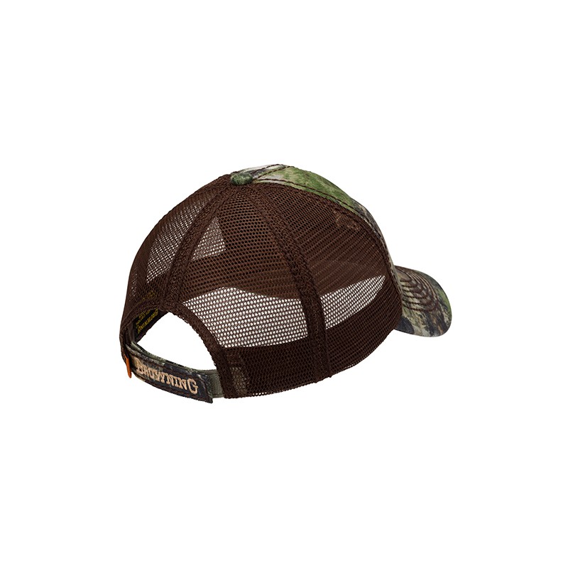 Browning Bozeman Brown - Mossy Oak Mountain Country Cap, With Hook and loop closure, meshback cap in Mossy Oak Mountain Country with raised embroidered Buckmark