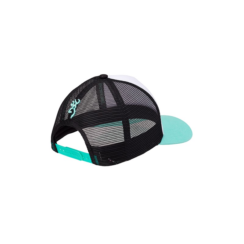 Browning Stance Cap - Teal, Snapback, meshback women's camp with reverse Buckmark in word art.