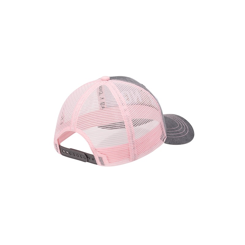 Browning BRNG Gray/Pink Cap, With Snapback, meshback women's cap with raised embroidered Buckmark and BRNG logo.